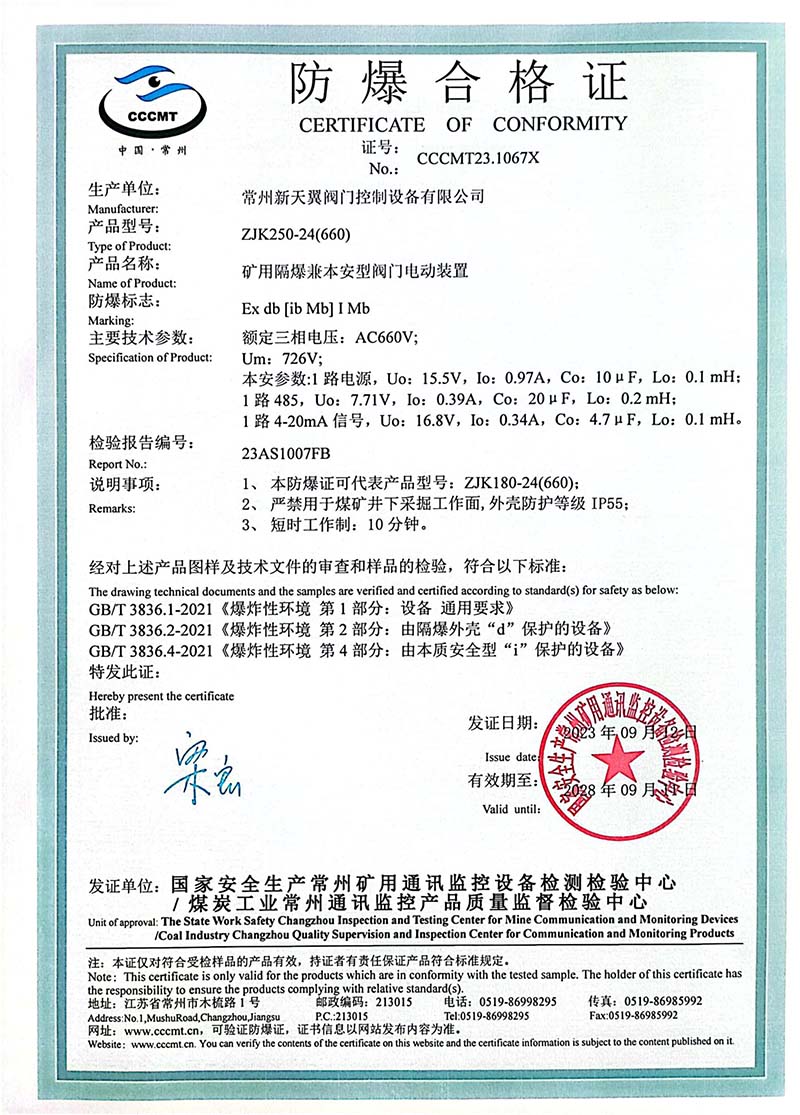 礦用產(chǎn)品安全標(biāo)志證書ZJK30-24(660)