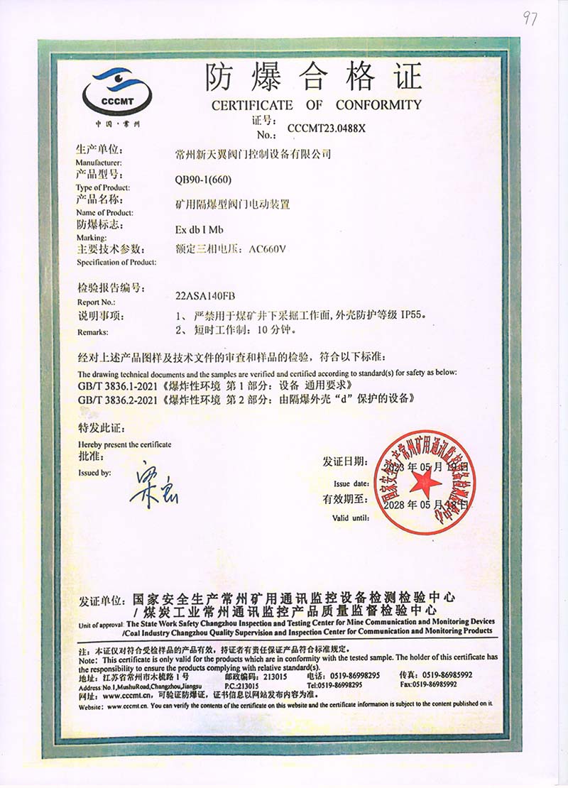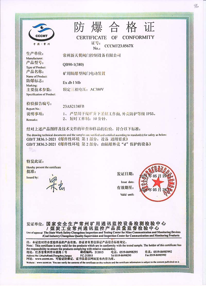 QB90-1(380)防爆合格證