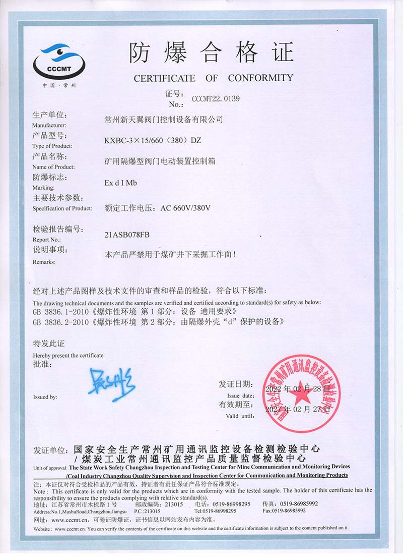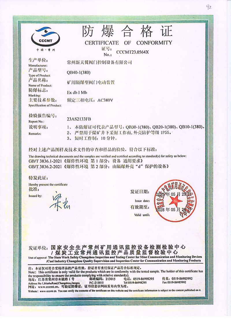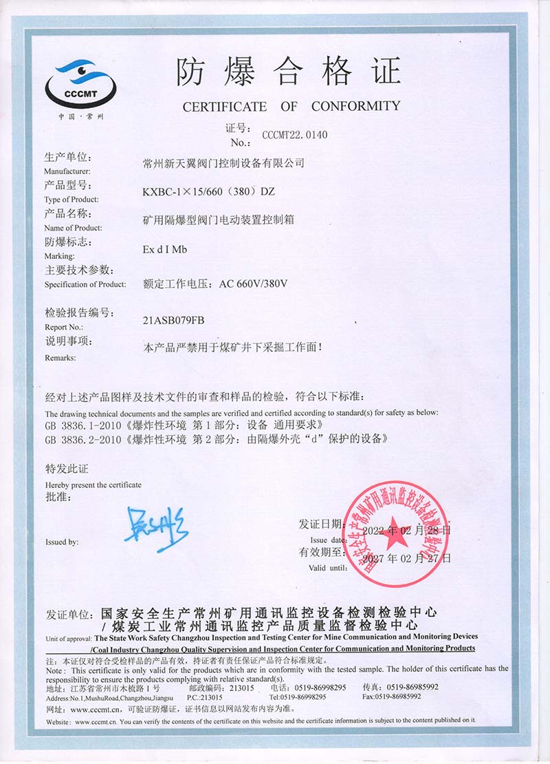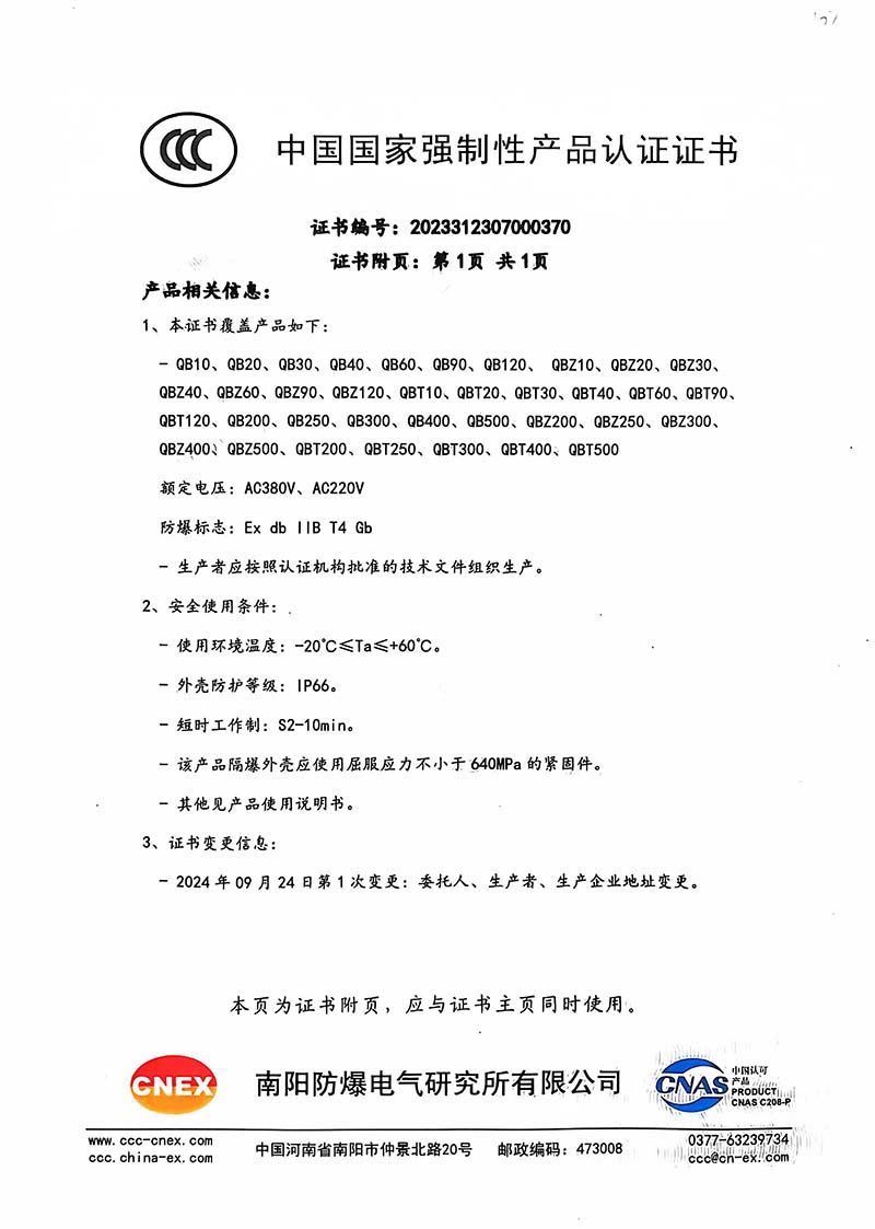 隔爆型QB QBZ QBT 220380中國國家強制性產(chǎn)品認(rèn)證證書107.2