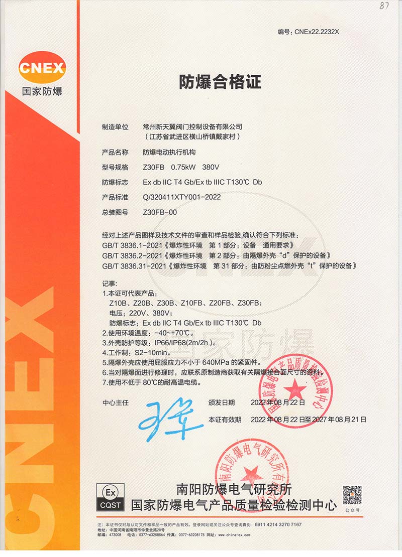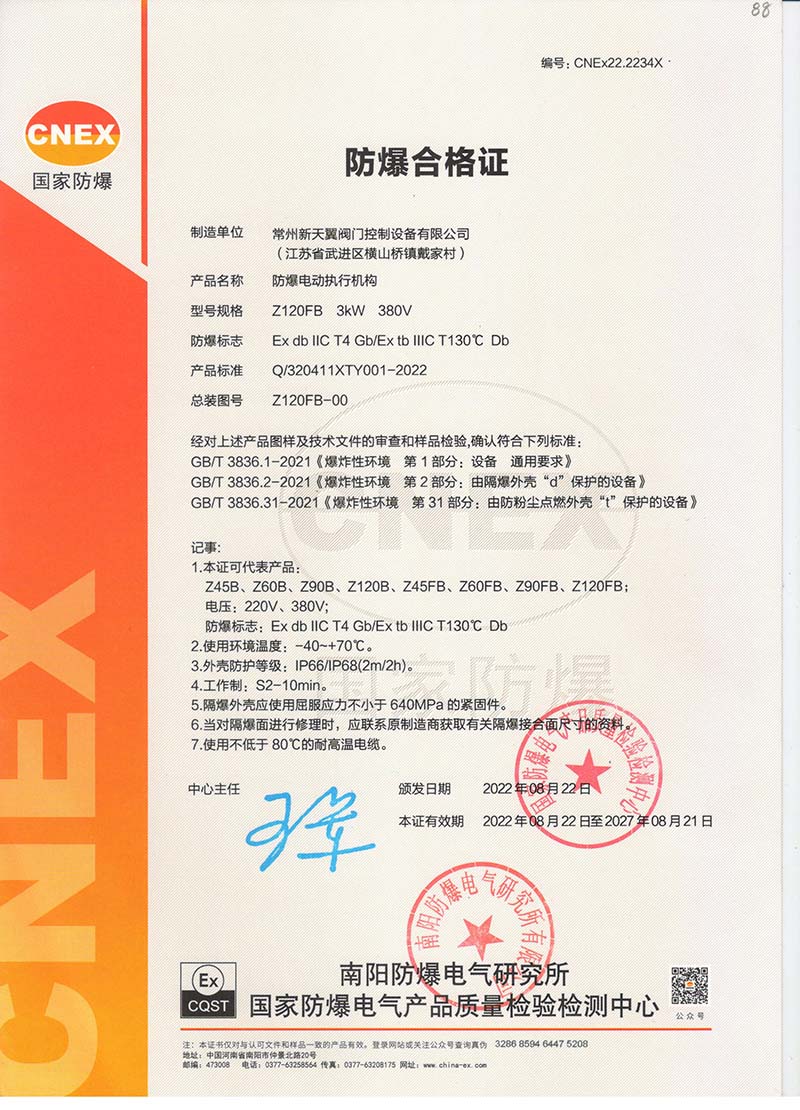 防爆Z10B Z10FB國家強制性產(chǎn)品認(rèn)證CT4證書109.1