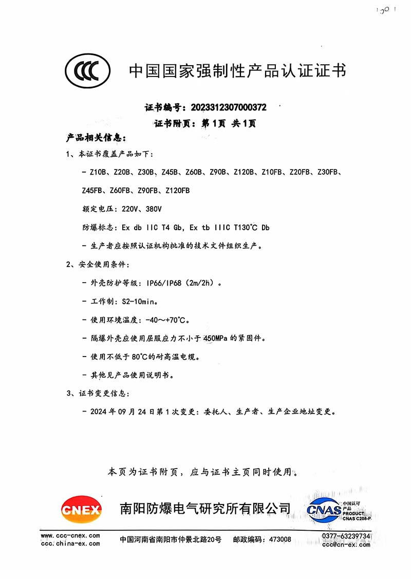 防爆Z10B Z10FB中國國家強制性產(chǎn)品認(rèn)證證書109.2