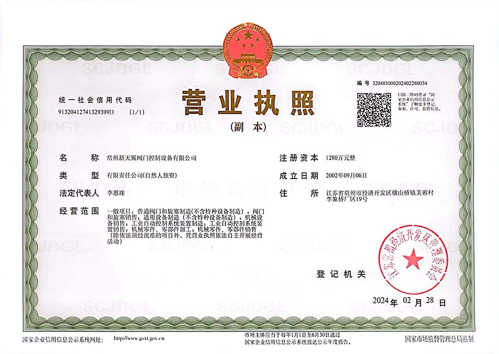 常州新天翼閥門控制設(shè)備有限公司